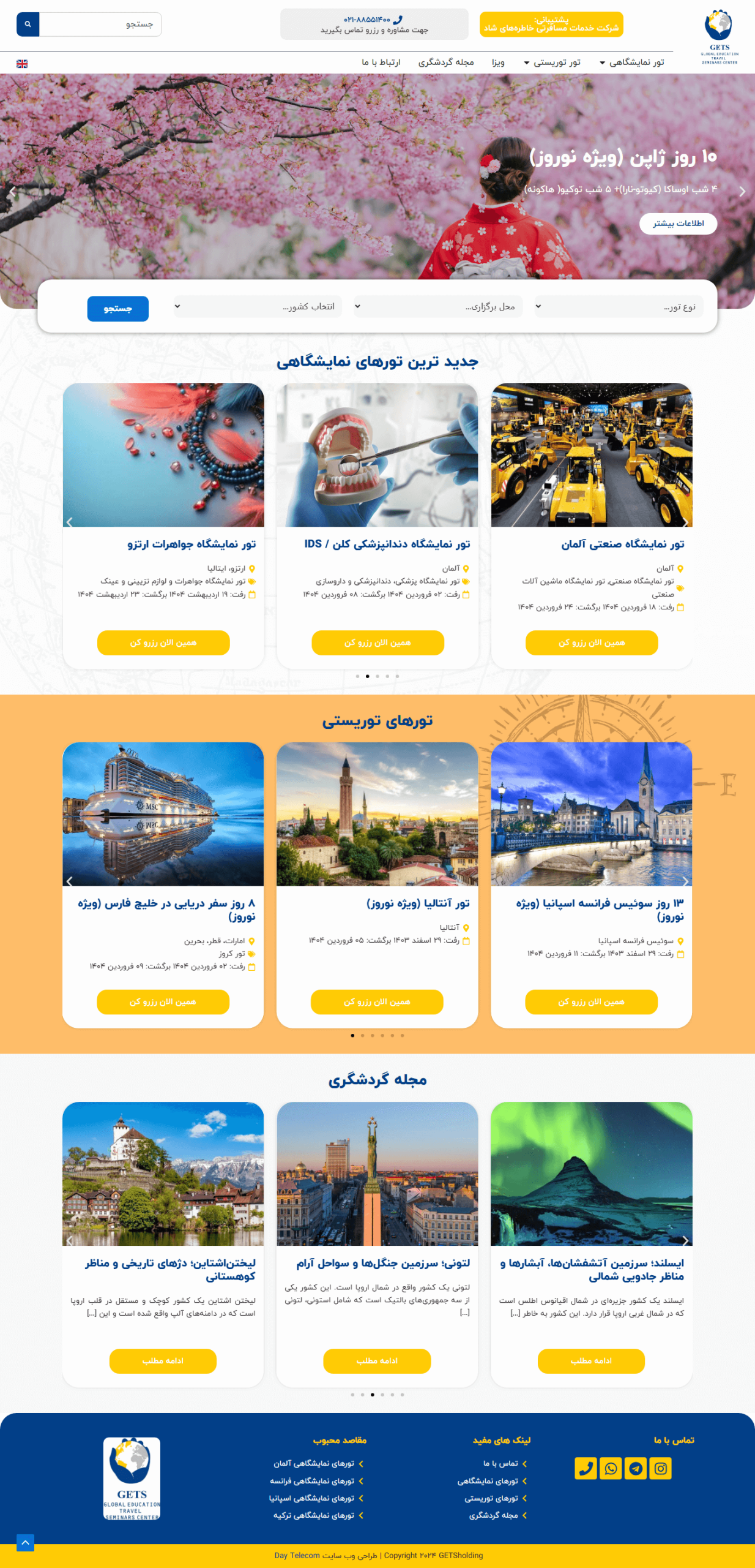 برای یه شرکت گردشگری که در زمینه تورهای نمایشگاهی هم فعالیت میکنه، یه سایت دوزبانه طراحی کردم. طراحی با استفاده از قالب Astra و افزونه Elementor Pro انجام شده. توی این سایت، امکان معرفی تورها با جزئیات کامل وجود داره و یه جستجوی پیشرفته هم پیادهسازی شده تا کاربران بتونن تور مورد نظرشون رو براساس فیلترهای مختلف به راحتی پیدا کنن. تمرکز سایت روی راحتی کاربر، دسترسی سریع به اطلاعات و نمایش حرفهای خدماته.
